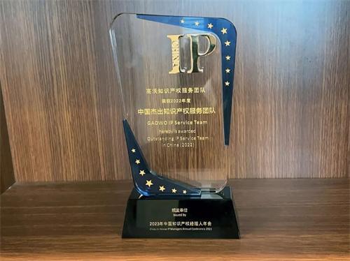 Recently, the 13th China Intellectual Property New Year Forum and the 2022 China Intellectual Property Managers Annual Meeting have successfully concluded in Beijing. At the annual meeting, the annual award was announced, and Gaowo Intellectual Property was awarded the title of 2022 China Outstanding Intellectual Property Service Team for its high-quality legal services, excellent business capabilities, and outstanding team operations. Gaowo has won this honor for three consecutive years.