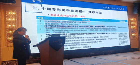 While Teacher Zhai Yanli , from the perspective of "patent award", introduced the cultivation ways of high-quality patents, focusing on the establishment of a sound intellectual property management system, the realization of management standardization, the strengthening of layout protection, and the acceleration of operation, transformation and utilization of intellectual property to obtain competitive advantages.