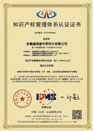 The successful certification of the intellectual property management system will further enhance Shenghaitang's intellectual property management level, effectively stimulate innovation vitality and enhance its market competitiveness.