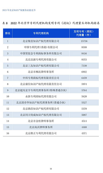 2023年12月7日、北京市知的財産権局が主催した北京市知的財産権サービス業(yè)工作會は円満に閉幕し、2023年北京知的財産権サービス業(yè)青書を発表した。北京高沃弁護士事務(wù)所は発明特許(授権、結(jié)審)の代理量の優(yōu)位性により、北京の952の代理機構(gòu)の中から選ばれ、2022年の北京市特許代理頭部機構(gòu)に登録された。